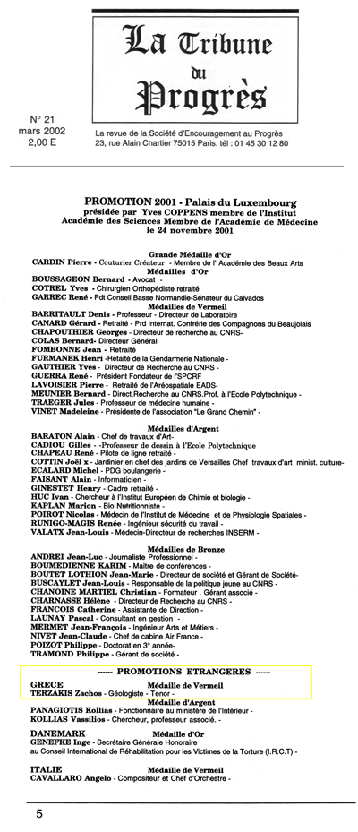 Βραβείο από την Société d' Encouragement au Progrès