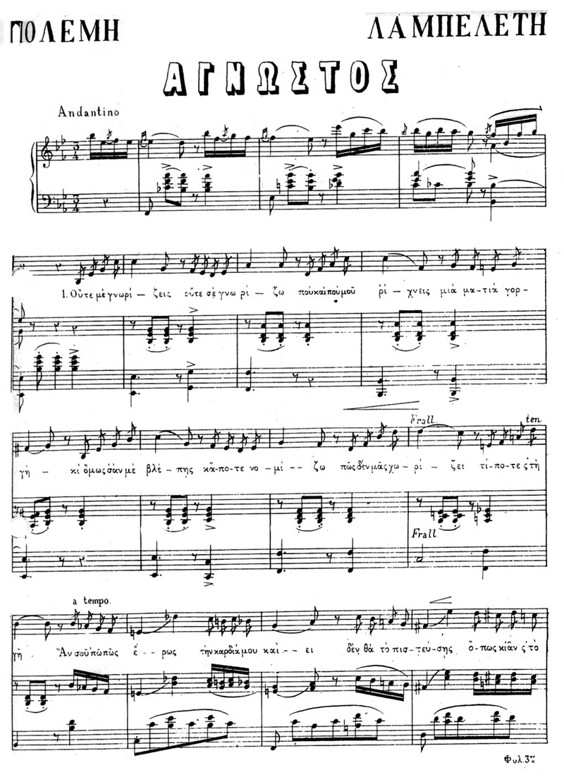 (Στίχοι: Γεώργιος Λαμπελέτ)