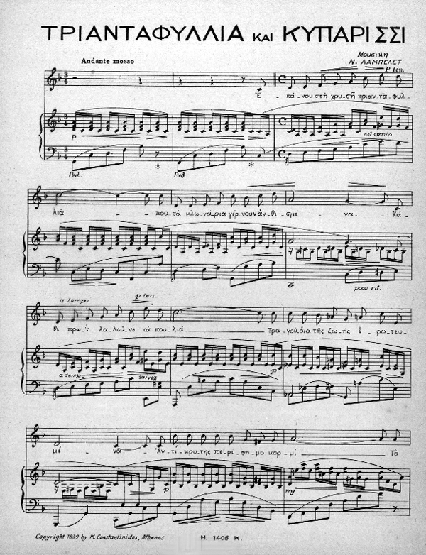 Ναπολέων Λαμπελέτ: "Τριανταφυλιά και κυπαρίσσι" (1939)
