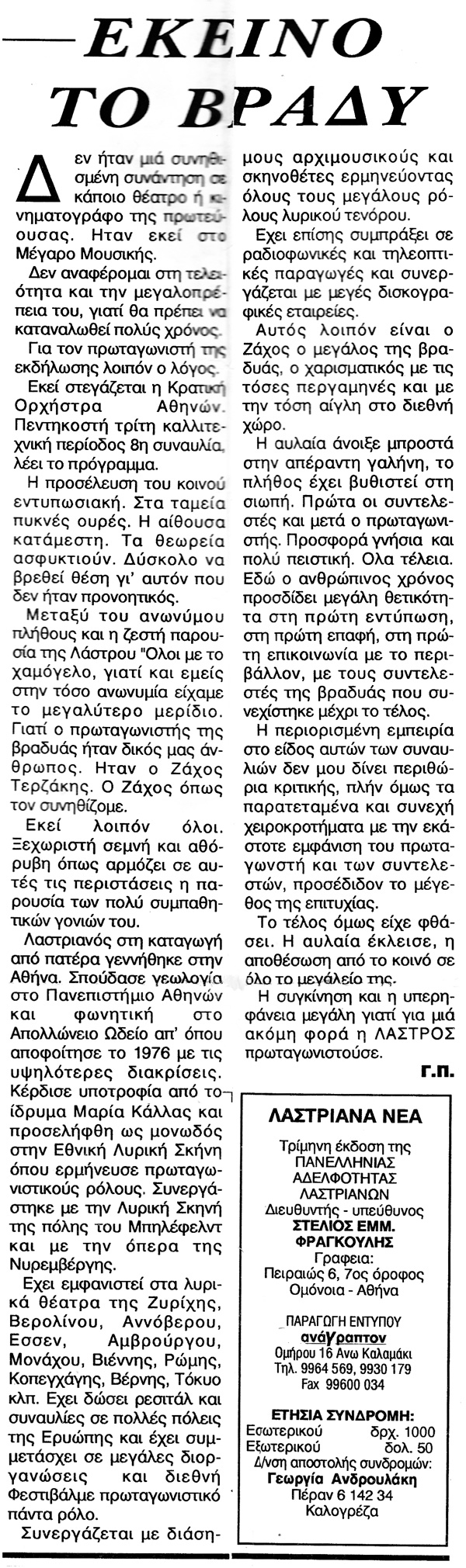 Από το ρεπερτόριο του Ζάχου Τερζάκη